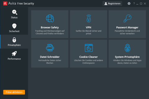 Avira Free Security für Windows ist ein leistungsstarker Virenschutz, der viele kostenlose Extra-Funktionen wie ein VPN, einen Passwort-Manager und einen Software- und Treiber-Updater enthält. Die Software wurde von SafetyDetectives als bestes kostenloses Antivirus für Windows eingestuft und hat mehrere Auszeichnungen für ihre Schutzfunktionen, Benutzerfreundlichkeit und Leistung erhalten. Aviras Cloud-basierter Malware-Scanner bietet mit einer Erkennungsrate von 99,9 % zuverlässigen Echtzeitschutz und ist so ressourcenschonend, dass es Ihren PC nicht ausgebremst.